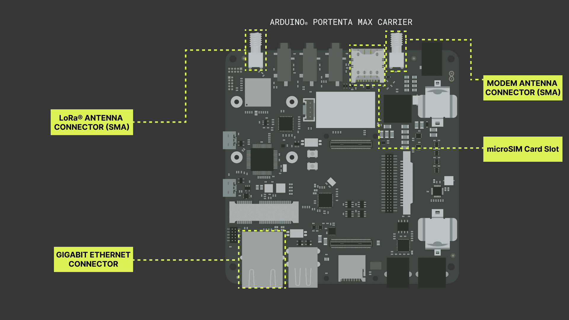Please DO NOT USE the cellular modem without the external antenna attached to the SMA connector. It might damage the Portenta Max Carrier if used without.